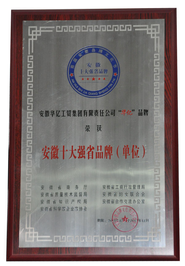 “華億”品牌榮獲“安徽十大強省品牌”稱號
