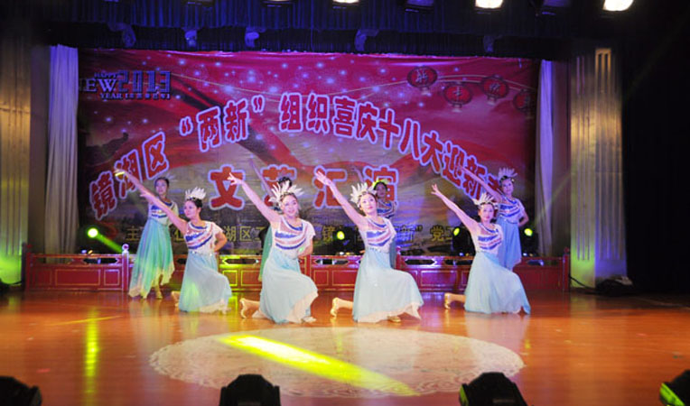 12月27日下午,鏡湖區工商聯、兩新黨工委主辦的兩新組織"喜慶十八大迎新春文藝匯演"在區大禮堂隆重舉辦。鏡湖區四大班子主要領導、區直各部門及區"兩新"組織400余人觀看了演出。其中由華億集團黨委選送、團委組織的舞蹈節目“美麗的心情” 在16支隊伍中獲得二等獎的佳績。華億藝術團的姑娘們演出中精彩的表演和華麗的場景,給觀眾送上了一道美妙的視覺盛宴,也展示了華億人良好的精神風貌。
