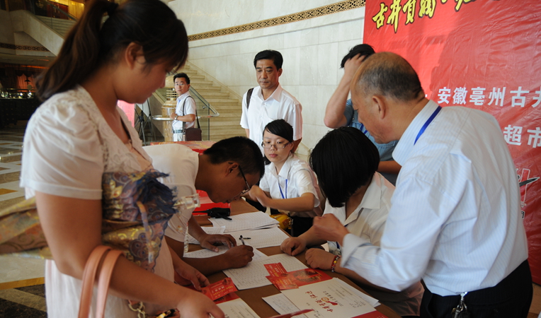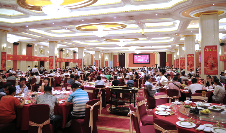 在華億超市公司工作人員的精心策劃布置下,品鑒會(huì)活動(dòng)現(xiàn)場(chǎng)顯得十分高端、喜慶。酒店門口大紅的空飄隨風(fēng)擺動(dòng),條幅字幕顯眼,拱門立于路邊,吸引了無數(shù)路人眼光。酒店內(nèi),大紅色的迎賓導(dǎo)視系統(tǒng)十分醒目,工作人員精心的將會(huì)廳內(nèi)立柱全部包裹,現(xiàn)場(chǎng)一片紅紅火火。上午10時(shí),參加古井貢·紅運(yùn)上市品鑒會(huì)的重點(diǎn)客戶陸續(xù)到來,客戶在簽到處將抽獎(jiǎng)券放入抽獎(jiǎng)箱后,便來到宴會(huì)廳入席,品嘗果品,觀看華億集團(tuán)發(fā)展成果介紹短片,現(xiàn)場(chǎng)一片喜氣洋洋。