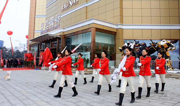 一場(chǎng)冬雪后的潁州格外清新,放眼望去,銀裝素裹,新年的氣氛愈發(fā)濃烈。位于潁州路與潁河西路交匯處的華億國(guó)際門前廣場(chǎng)上,彩球隨風(fēng)飄揚(yáng),紅地毯直通商場(chǎng)入口,顯得十分喜慶。數(shù)千名潁州市民翹首企盼,等待商場(chǎng)開門營(yíng)業(yè),成為華億國(guó)際的首批顧客。上午8:58,商場(chǎng)試營(yíng)業(yè)升旗儀式正式開始,在華億軍樂隊(duì)演奏的莊嚴(yán)《國(guó)歌》和《華億之歌》歌聲中,五星紅旗和華億集團(tuán)司旗緩緩升起,華億員工和全場(chǎng)市民紛紛高唱國(guó)歌,向國(guó)旗行注目禮。
