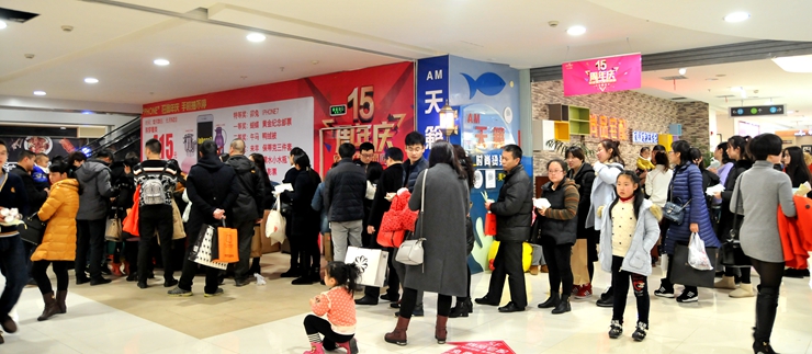 1日上午,華億國際購物中心舉行了簡短而莊重的升旗儀式,慶祝自己的15周年生日。商場開門后,A座中庭一塊面積約6平米的巨型生日蛋糕映入眼簾,十分喜慶。華億國際副總經(jīng)理、旗艦店店總王萍女士熱情地為消費者遞上蛋糕,與其共享生日喜悅。在營銷方面,華億國際步行街店開展了一系列活動,在B5樓開展的店慶抽獎,IPHONE7、紀(jì)念金郵等禮品,讓參與抽獎的顧客著實激動了一把。與銀行合作,開展購物滿減、滿贈活動,優(yōu)惠力度大,每天早晨商場門前就排起隊伍等候開門,爭搶享受優(yōu)惠的機會。此外,華億國際與蕪湖本土老字號的五香居聯(lián)合開展了千人試吃會,2天內(nèi)1600多斤熟食,免費派發(fā)給了顧客。華億國際星隆店線上70元限量搶購100元代金券的活動吸引不少消費者參與。繁昌華億廣場元旦期間舉辦了多場迎新年親子互動活動和美食節(jié)活動,場面十分熱鬧。