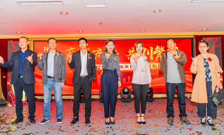 在主持人的熱情邀請下,繁昌縣商務局長姚士群,華億集團總裁助理、華億置業公司財務總監陳雪榮,華億置業公司副總經理黃常青,華億環球影城總經理孫艷,繁昌華億國際購物中心總經理王蕙瑾,共同將金色流沙緩緩地注入案名當中,象征華億春谷·新天地正式面向市場開門迎賓。