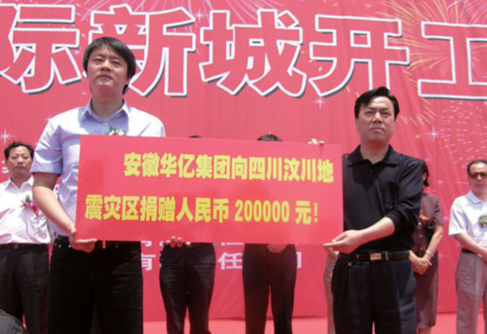 2008年5月12日汶川發(fā)生大地震,災(zāi)情牽動(dòng)著每一位中國人的心。華億集團(tuán)為此舉行了莊重的捐款儀式,用于支援災(zāi)區(qū)的同胞。