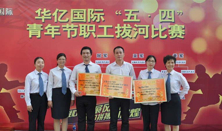 2012年5月4日,為慶祝“五四”青年節,華億國際在步行街華億廣場A座門前廣場舉辦了“五?四青年節職工拔河比賽”。